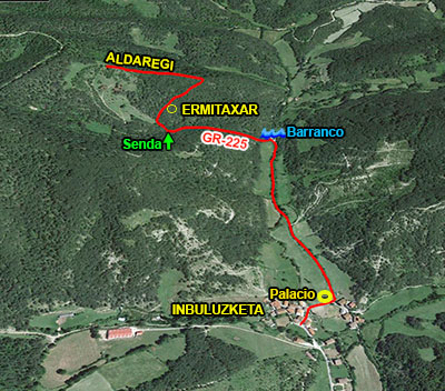 ![]() Inbuluzketa. La senda por el cerro de Aldaregi Inbuluzketa. La senda desciende a Ermitaxar |