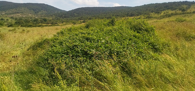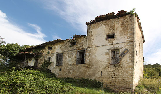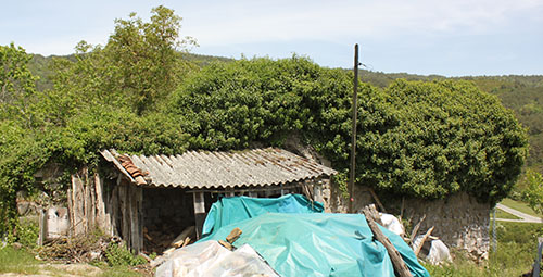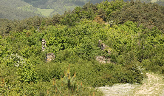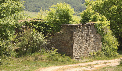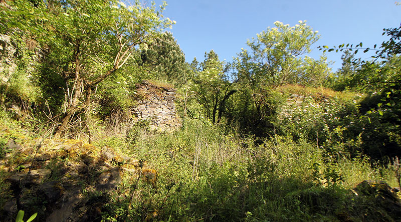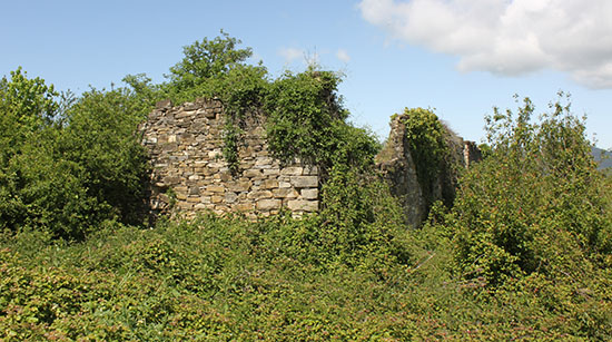 Quedan del despoblado las ruinas de un edificio de vivienda, totalmente arruinado y cubierto por la vegetación que impide su completa visibilidad. Iodieta. La única casa que sobrevivió hasta su despoblación. |