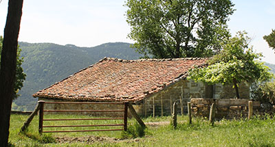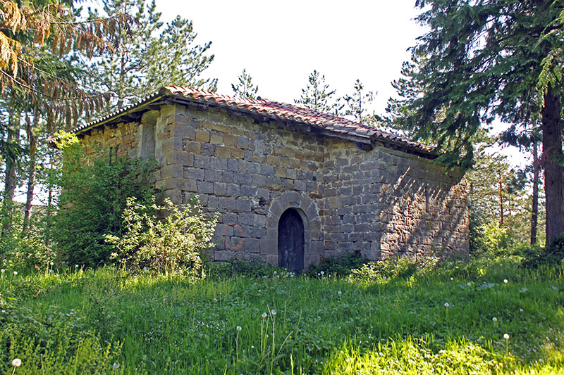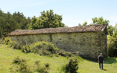 Tirapegui. Restps de la ermita de San Pedro (2014) Están muy a la vista y pegados a la pista de acceso a Basagaitz, los edificios de dos casas. Ambos edificios están utilizados como bordas para el ganado, especialmente vacuno. Unos metros antes de llegar a las casas, estan los restos de la ermita dedicada a San Pedro. Pista arriba encontramos otro edificio con estructura y forma de pajar para almacenamiento de hierbas también para el ganado.