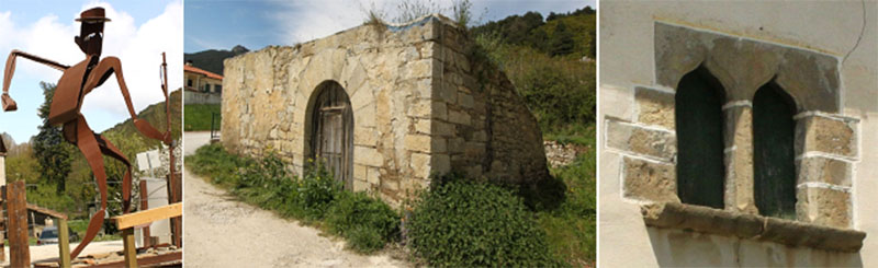 En entrada del camino de Santiago en Zuriain, un moderno monumento al peregrino recuerda que estamos en esta vía. También en Zurian conservan una antigua portada de medio punto con parte del muro para sostenerla. En Saigots una casa conserva una ventana geminada con arcos conopiales.