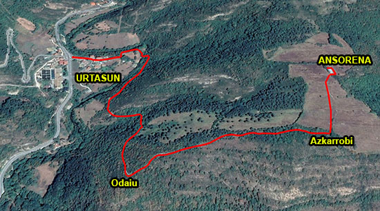 Llegamos a Aldaregi desde Inbuluzketa por una pista que sale hacia el N (Camino de Leranotz) por la que avanzamos hasta el barranco de Oiarko, donde llega del W otra pista (GR-225 - La Fuga de Ezcaba). Tomamos esta pìsta y a poco más de trescientos metros la abandonamos para tomar una senda que sale al W-NW. Esta senda pasa inmediatamente el barranco y sale al pastizarl o raso de Oiarko, esquivándolo por el SE, para poner rumbo N e ir elevándose paulatinamente hasta el alto del cerro de Aldaregi.