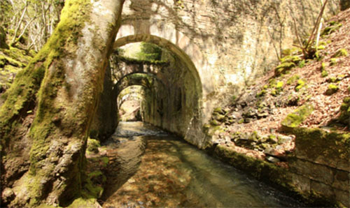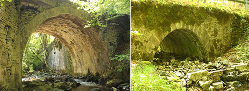 Eugi. RFAM. Muro elevado y arco sobre el río.