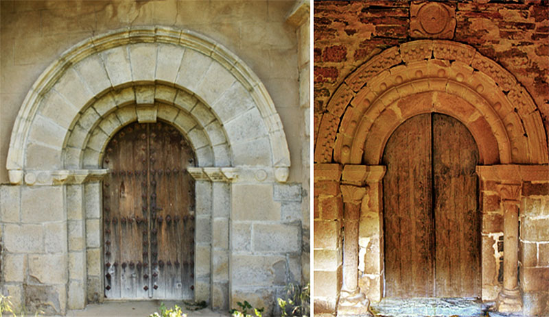 Hay algunos ejemplos en los que la portada se encuentra encajada en una especie de nicho. Estas portadas se encuentran cobijadas bajo una cubierta de arco escarzano, apoyada en una cornisa moldurada (San Millán de Zuriain) o directamente sobre los muros laterales (San Esteban de Zabaldika).