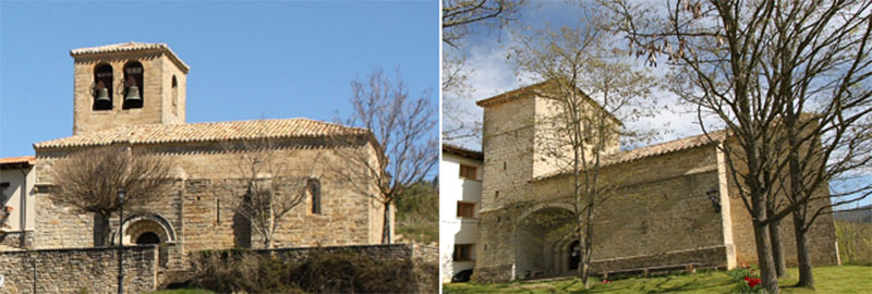 Por lo general, son iglesias de planta rectangular con una única torre campanario, que en muchas ocasiones presentan doble vano para las campanas. Sirven, entre otras, como ejemplos las de San Nunilo y Santa Alodia de Sarasibar, la de la Inmaculada de Errea y la de San Lorenzo de Iragi.