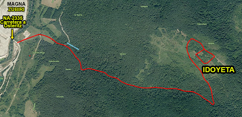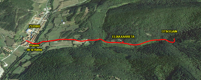 La toponimia actual lo denomina Otsagain. Este paraje se ubica al E de Zubiri, desde donde se accede por un camino que sale desde el pueblo, cruza el río Arga por el Puente de la Rabia y se dirige hacia el E, inicialmente por el Camino de Santiago, hasta alcanzar los términos de Elixaxarreta y Otsagain. Esta pista sigue el cáuce del barranco de Otsagain lo que permite distinguir con mucha nitidez la vegetación de ribera del entorno del barranco de los bosques de pinos de las laderas de los montes