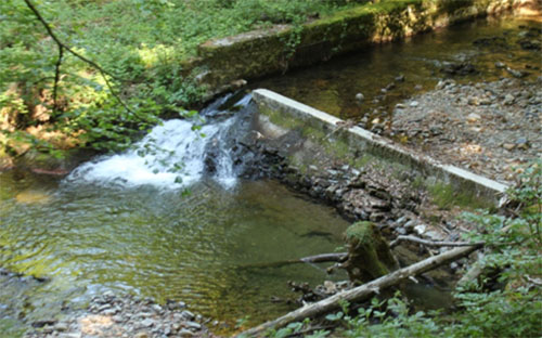 La piscifactoría de Olaberri. Seiscientos metros arriba de las ruinas de la fábrica, pasada la casa forestal, se encuentran las estructuras de la Piscifactoría de Olaberri, hoy día fuera de producción y en estado de abandono. Al igual que las ruinas anteriores, se ubica en término de Zilbeti, del Valle de Erro.
