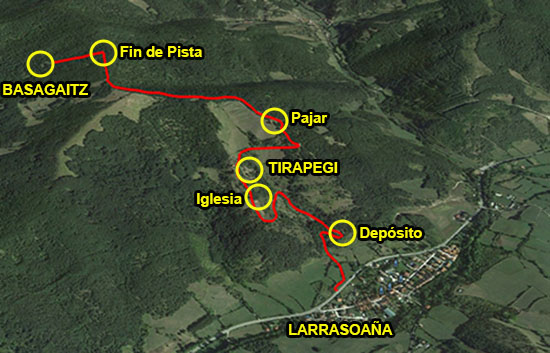 Basagaitz. Ruta de acceso a Tirapegi y Basagaitz.