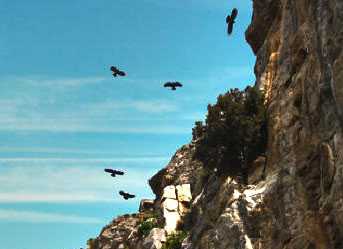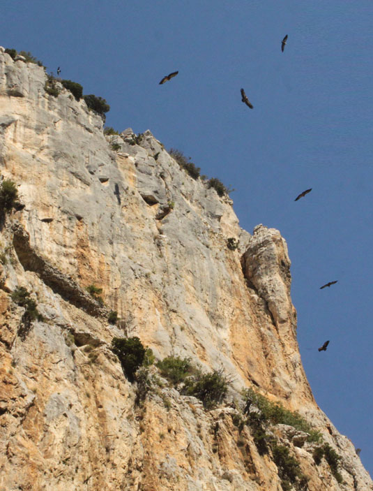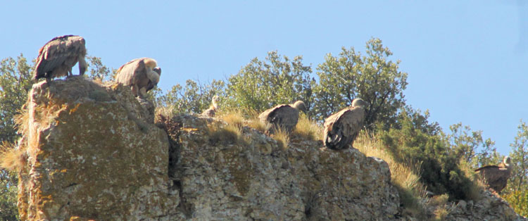 Ambas reservas naturales y la proximidad de la Foz de Arbaiun, con otra gran colonia de buitres leonados, hacen de esta zona un habitat muy especial para estas aves. De ahí el establecimiento del muladar de Lumbier. Lumbier. Buitres sobrevolando los roquedos de la foz.