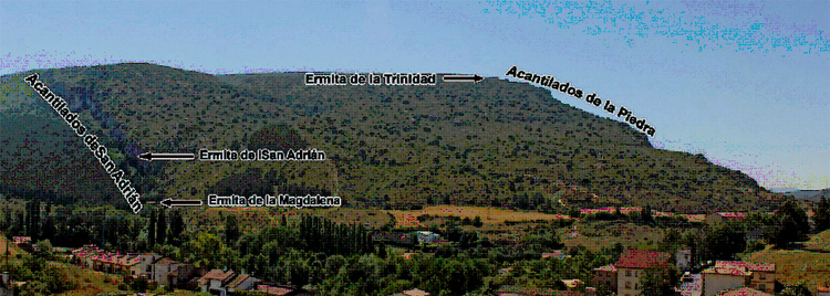 Los acantilados forman dos alineaciones. Peñas de San Adrián, orientadas al norte, y La Piedra, orientadas al sur, casi paralelas de calizas eócenas, descubiertas por sendas fallas. Los acantilados forman paredes verticales de más de 511 m. de desnivel, de tonos rojizos y en La Piedra, en su parte oriental hay varios arcos naturales, fruto de la erosión, a los que popularmente se llaman Puentes. La vegetación es de matorral mediterráneo, degradado, con algunas carrascas (Quercus rotundifolia), coscojas (Quercus cocifera), boj (Buxus sempervirens), enebros (Juniperus communis y Juniperus oxycedrus), etc., que ha sufrido repetidos incendios. En su borde septentrional y al cobijo del acantilado se encuentra la ermita de San Adrián, y dentro de la reserva, en situación dominante la ermita de la Trinidad. El objeto de la reserva, además del mantenimiento del paisaje, es la conservación de las comunidades rupícolas, en particular de aves, entre las que destaca una importante colonia de buitres (Gyps fulvus).