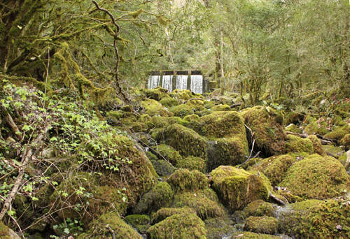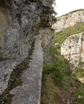 álamos, fresnos, alisos y abundante matorral de ribera. Nos adentramos al interior de la foz para contemplar un nacedero de agua que, mediante una canaleta construida en 1928 y elevada sobre el curso del río, conduce el agua hasta Lumbier para el consumo humano. Anteriormente también se aprovechaba para una pequeña central eléctrica, instalada junto al Puente de la Sielva, en el río Salazar