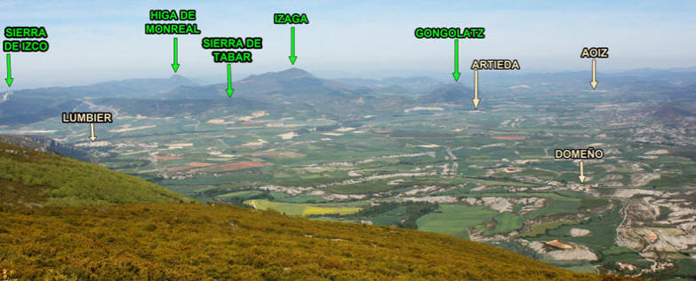 Desde lo alto de la Sierra de Tabar observamos los límites del territorio de Lumbier. Vemos al E y NE la Foz de Arbaiun y la Sierra de Leire, donde queda Romanzado. De N a W se halla Urraúl Bajo. Al SW está el territorio de Aibar y al S el de Liédena, el de Yesa y un pequeño espacio de Sangüesa.