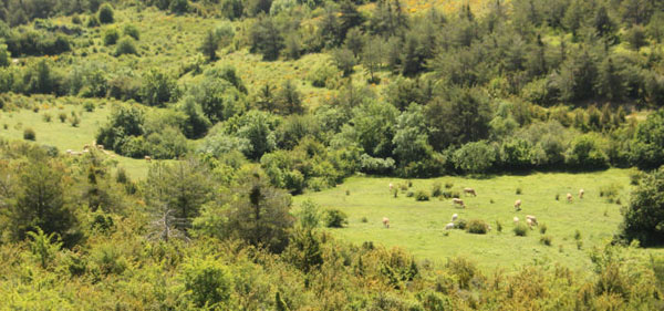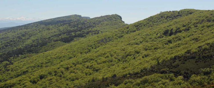 plantaciones de pino laricio se ubican en lo alto de esta ladera
