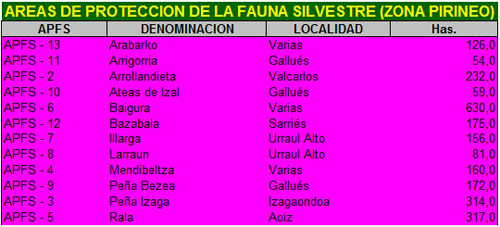 Los Puntos de Alimentación Suplementaria de Aves Necrófagas (Muladares) establecidos en la Zona Pirineo están en: Napal, Lumbier, Garralda, Jaurrieta y Zandueta. Asimismo, están previstos muladares en zonas como Izagaondoa, Aoiz, Ochagavía y Navascués.