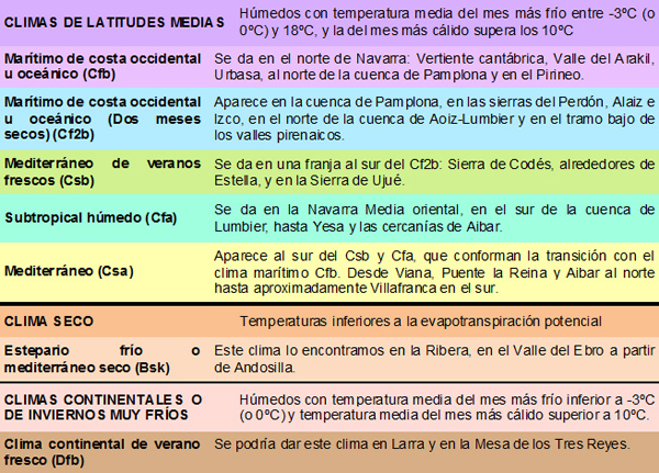 Climas de Navarra y de la Zona PirineoDe acuerdo a la clasificación de Köppen,