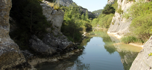 El río Salazar "canalizado" en la entrada de la Foz de Arbayún.