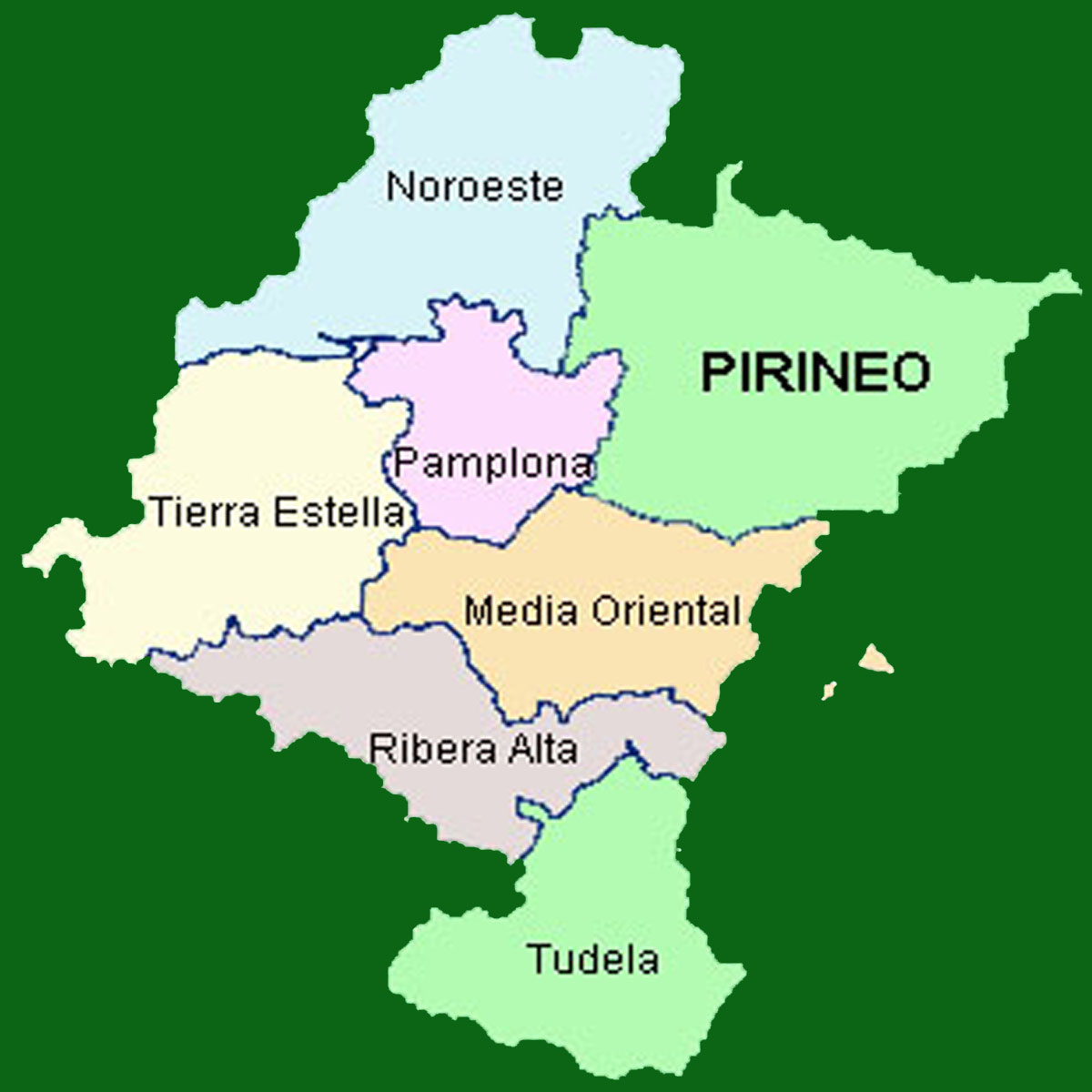 Sobre el mapa observamos que la Zona Pirineo ocupa el cuadrante nororiental de Navarra y comprende los valles pirenaicos y parte de las cuencas prepirenaicas de Navarra. Tiene una superficie de 2.288,40 Km2, lo que representa un 22% de la superficie de Navarra.