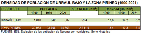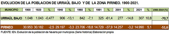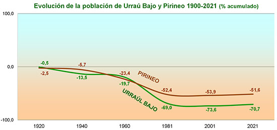 de la Zona Pirineo, y que recoge el descenso poblacional ocurrido en el S.XX, no sólo en Urraúl Bajo, sino en la Zona Pirineo y en muchas zonas rurales de Navarra.
