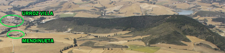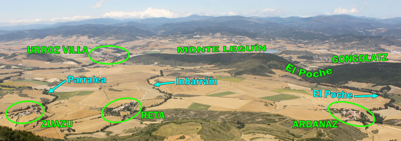 la Sierra de Aranguren (San Miguel, 803 m. y el Castillo de Irulegui,