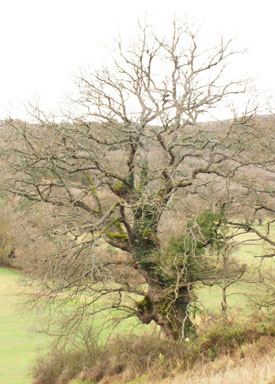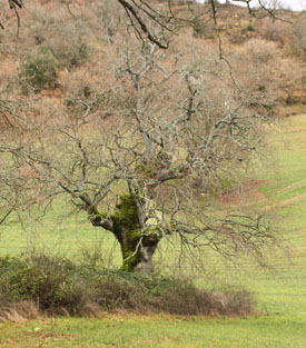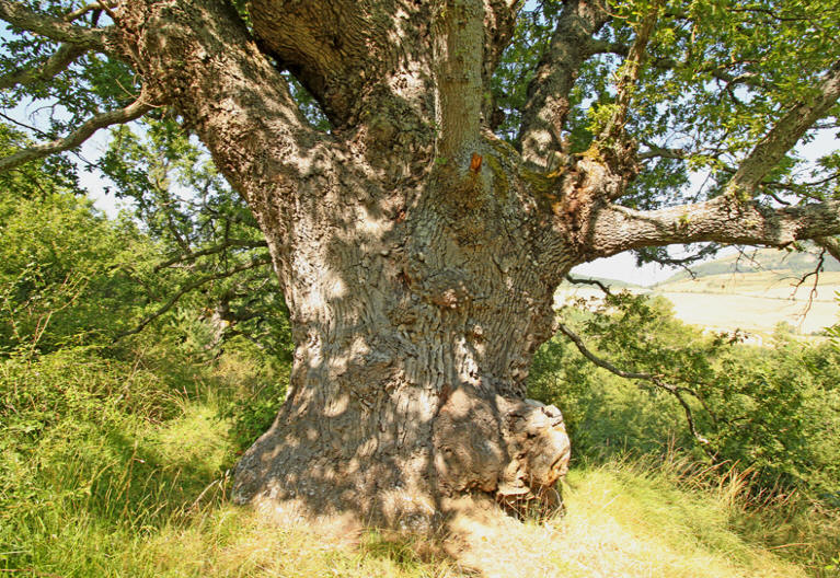 Iniciamos el recorrido del sendero SL-NA 143 en Lizarraga, junto a Casa Merkatari, y lo continuamos en suave ascensión siguiendo el curso de una pequeña regata hasta coger altura que mantenemos durante un kilómetro hasta alcanzar el collado de La Calera. Pero, unos cien metros antes de llegar al collado, pasamos bajo un enorme roble. Es el Roble de Lizarraga.