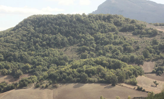 Lizarraga. El Alto de Muskilda. En primer plano el robledal de Lizarraga en la Peñica de Euntcea