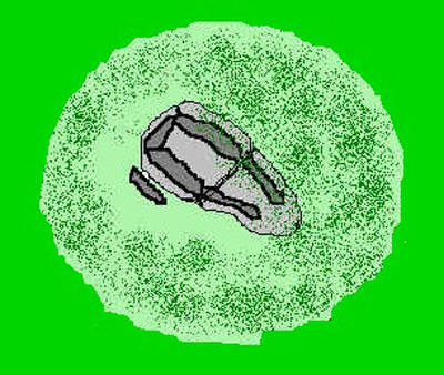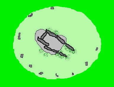 Dolmen de Sakulo Cámara compuesta por al menos cinco losas: cuatro laterales, dos a dos, y otra de fondo o cabecera. Planta e Imagen del dolmen de Sakulo en Isaba (Roncal).