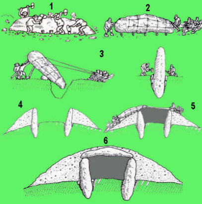 Gráficamente expuestos, y simplificando el proceso, los pasos para la construcción de un monumento megalítico, en este caso un dolmen, serían los siguientes: serían los siguientes: