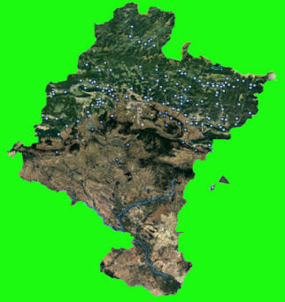 Distribución de los poblados de la Edad de Hierro de Navarra descritos por J. M. Martínez Txoperena.