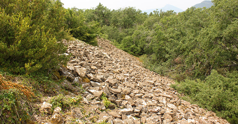 Besolla. El Alto. Rampa NE de acceso. A la izquierda de arriba hacia abajo. A la derecha de abajo hacia arriba..