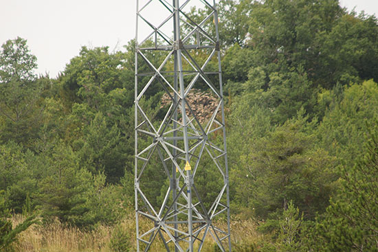 El Castillo. Extremo oriental de la muralla a través de la torre eléctrica.