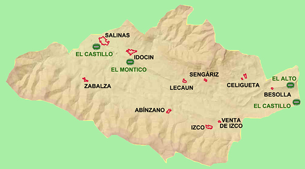 El PEH de El Castillo de Salinas En una loma situada sobre el río Elorz, al S del poblado de Salinas, se encuentran restos del que fuera un PEH, aprovechado en la Edad Media para la construcción de un castillo y una torre. Al recinto accedemos desde el cementerio, situado en la pista de la carretera a Zabaza.