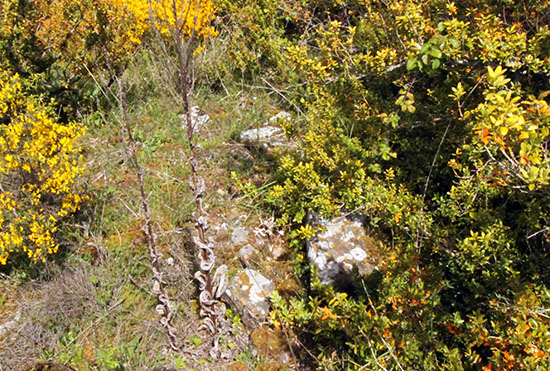El Castillo. Terrazas en la ladera S del asentamiento.