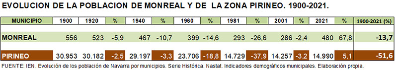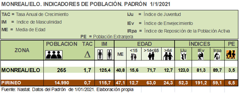 Indicadores de la población de Monreal/Elo.