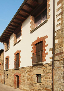 Las casas son originarias de los siglos XVII-XIX. Son de piedra y todas de dos o tres plantas. Las cubiertas son mayoritariamente a dos aguas, algunas a tres y muy pocas a cuatro aguas. Nos llama la atención la estrechez de algunas de sus casas dentro del apretujado casco antiguo en las que la portada ocupa todo la fachada de la casa con un vano por planta.