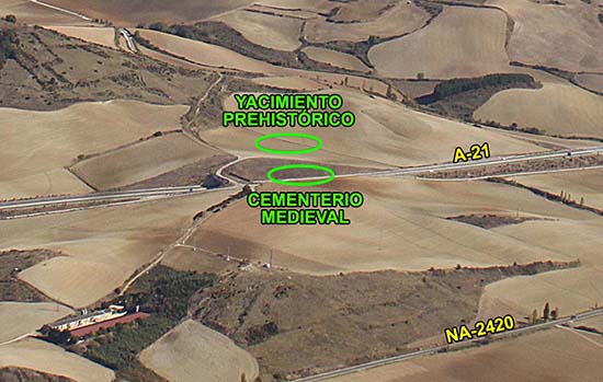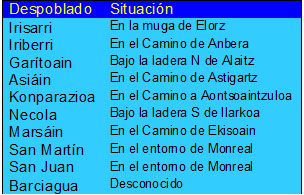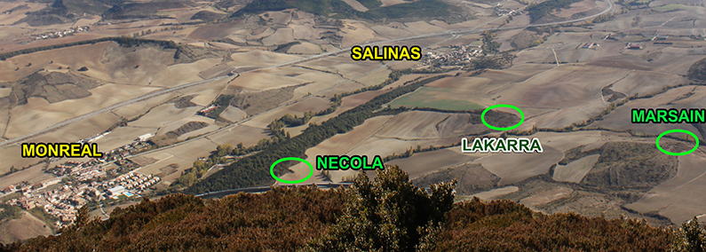 Monreal/Elo. Ubicación de los desolados de Necola y Marsáin y del asentamiento prehistórico de Lakarra.