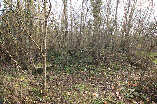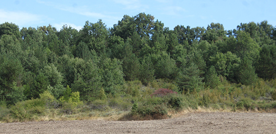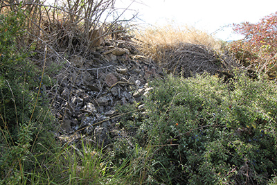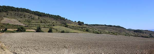 Al E del camino observamos un pequeño espacio ligeramente elevado cubierto de densa vegetación de matorrales que penetra en el campo cultivado. Curiosamente la concentración parcelaria de 1969 perimetró este espacio, pero lo respetó y no lo destruyó. Pudo ser porque en él se hallaban restos constructivos antiguos, posiblemente del poblado de Konparacioa.