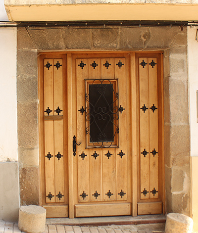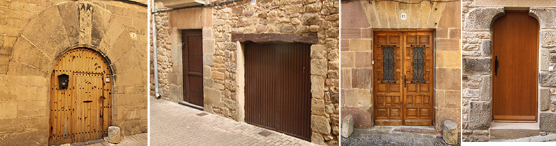 Ponemos nuestra atención en la variedad de portadas y puertas que aparecen por todas sus calles con elementos tan dispares como, además de los arcos de medio punto, los arcos rebajados con piedras o con ladrillo y las adinteladas con dovelas, hay dinteles de una sola pieza, de piedra o de madera, nuevas y antiguas con formas muy originales.