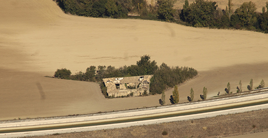 Monreal/Elo. Garítoain. La granja y el río Elorz desde la Higa.
