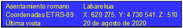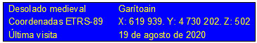 En los inicios del S. XVI consta como "aldea perdida" y unos años después desolado. Al igual que Irisarri, se hallaron abundantes materiales de su época y de épocas prehistóricas, pero no quedan restos de sus construcciones.