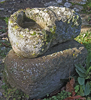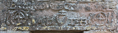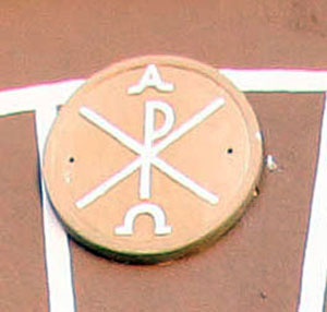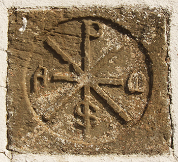 Pero surge un nuevo asunto con el crismón. Como muestran Faro Carballa y García Jaurrieta, en el muro de la granja se encuentro un crismón que ejerce la función de sillar, colocado al revés, para lo que ha sido recortado en sus partes superior e inferior para acoplarlo al muro. Podría ser que esta iglesia hubiera tenido dos crismones, como los tiene, por ejemplo, la iglesia de Induráin.