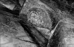 cabeza humana esculpida en ella que se hallaba recolocada en la