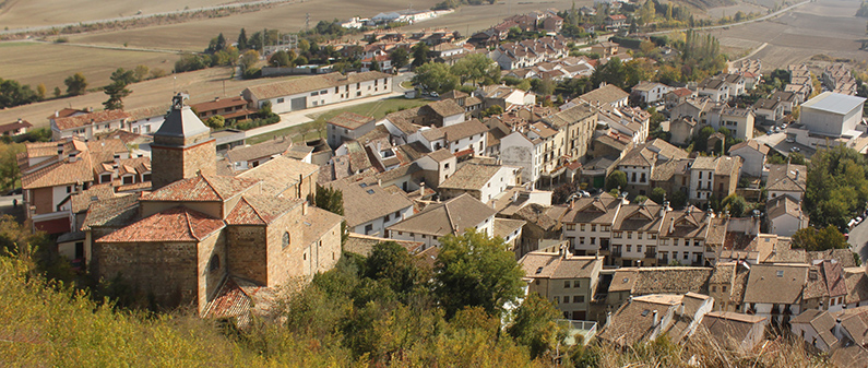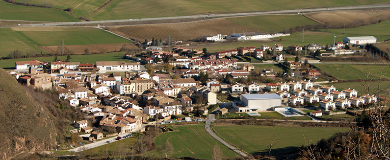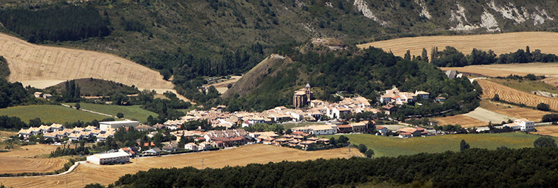 Monreal/Elo desde Izaga. A la derecha en el entorno de la iglesia el casco antiguo. A la izquierda las urbanizaciones.