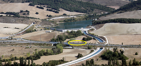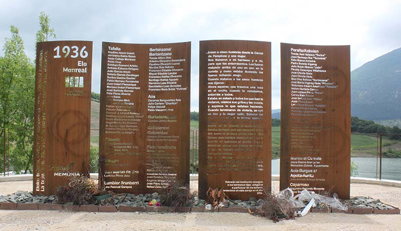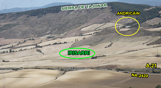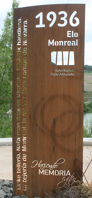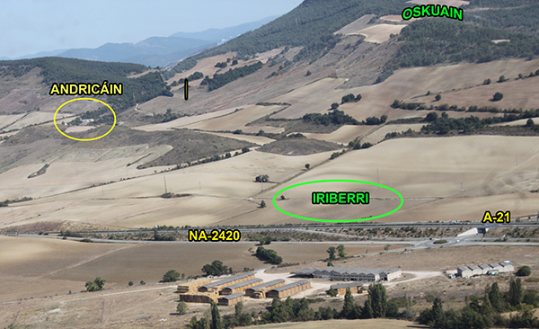 Salimos de Monreal/Elo en dirección a Pamplona por la N-240 para ascender al PEH de Oskuain. Tres kms. Adelante tomamos la carretera NA-234 de Campanas a Urroz e inmediatamente damos con un túnel, situado sobre el embalse de la presa del Canal de Navarra. Al salir del túnel debemos tomar un camino de rodadura que asciende a Oskuain, pero observamos unos metros adelante, junto a la carretera, unos grandes paneles que atraen nuestra curiosidad y nos encontramos con…