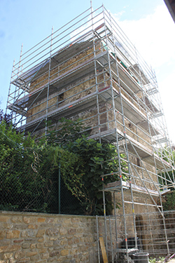 Monreal/Elo. Antigua torre antes, durante y después de la restauración.