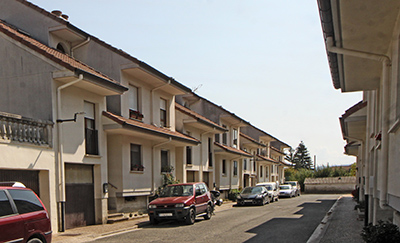 casas individuales, ligeramente separadas una de otras. Como